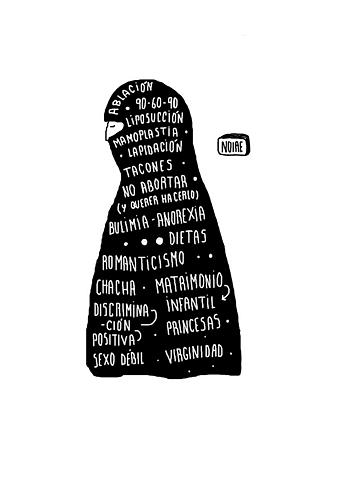 Las dos ideas vienen de la misma concepción, que las mujeres no podemos decidir por nosotras mismas y que por lo tanto hay que hacer leyes que decidan sobre nuestro cuerpo y nuestra vestimenta, porque nuestro cuerpo y nuestra imagen siempre son una amenaza. Prohíben nuestra libertad y nos excluyen a través de leyes represivas."
